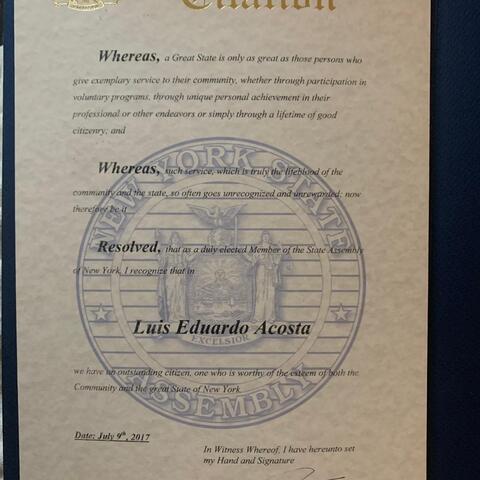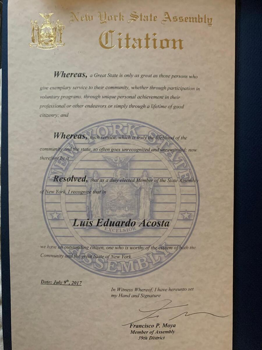 Congreso de EE.UU. (Washington): reconocimiento a labor comunitaria (Joseph Crowley, Congresista).